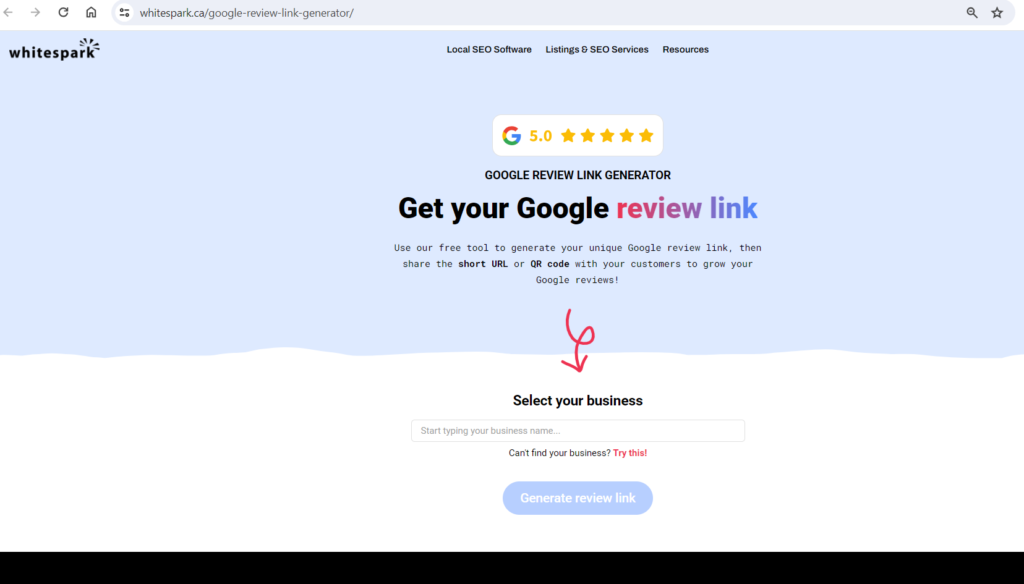WhiteSpark Google Review Link Generator:
