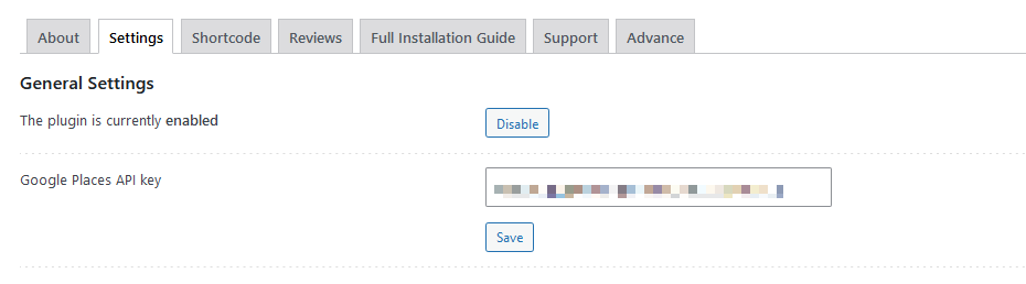 - Paso 3: WordPress y Google Places. En el panel de administración de tu web, sección “Ajustes” y “Widget Google Reviews”. Abre la pestaña “General Settings”. Ya puedes habilitar/deshabilitar el plugin y conectar tu web con la API de Google Places.