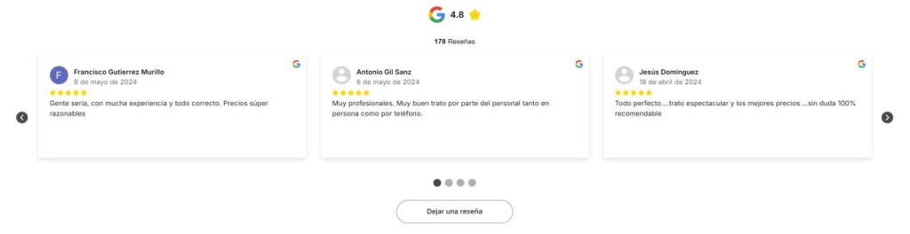 Según un estudio reciente, el 88% de los consumidores confía tanto en las reseñas online como en las recomendaciones personales. Ve directamente al siguiente enlace para poner un widget en tu web con las reseñas de tus clientes de Google satisfechos, totalmente GRATIS y de forma fácil y sencilla.